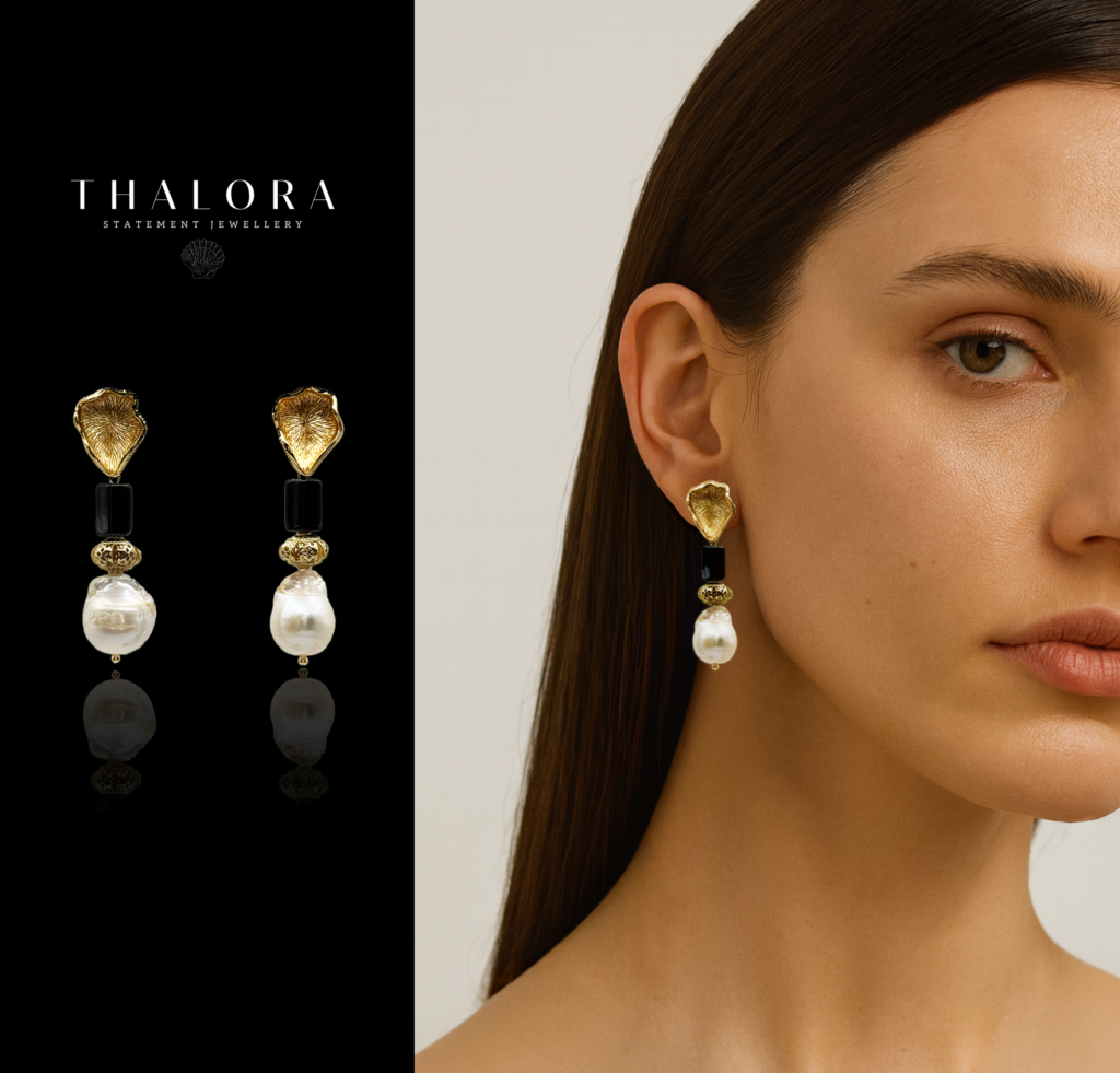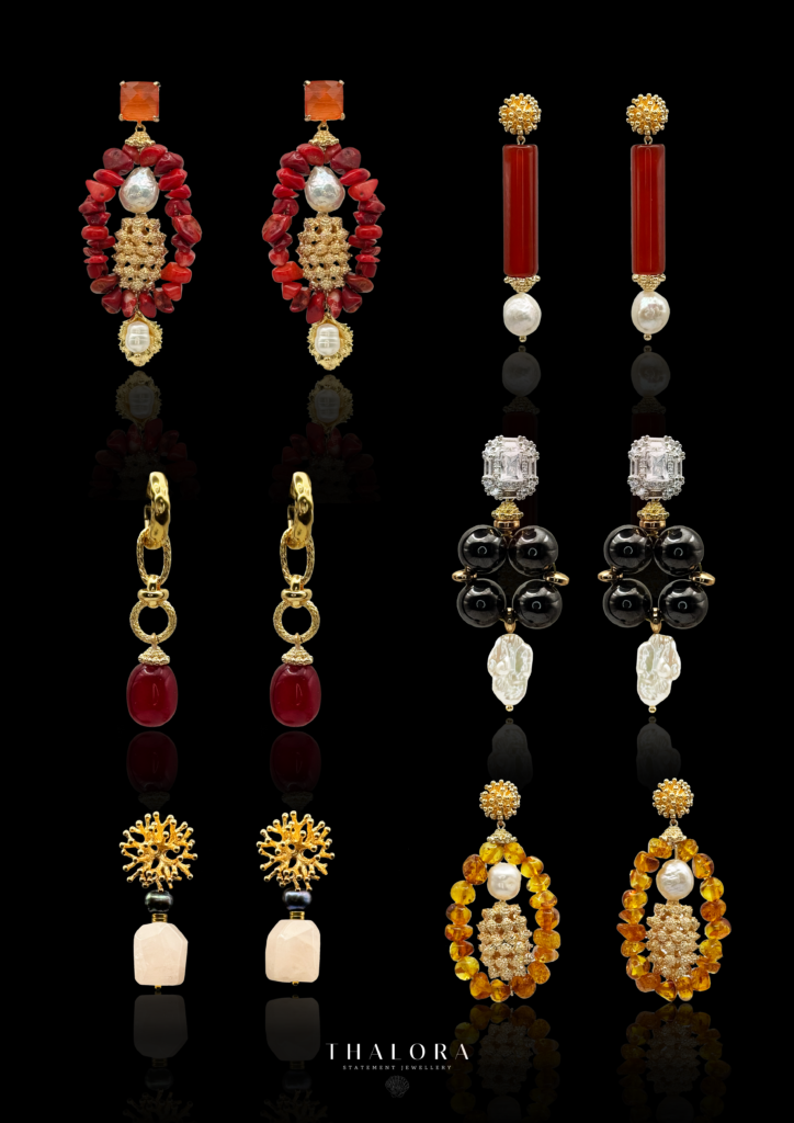 Коллекция Thalora сочетает природу и дизайн. Здесь можно найти серьги с янтарём и жемчугом, выразительные колье из цитрина или агата, а также украшения, в которых смелые цвета соединяются с деликатными деталями.